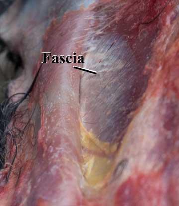 here is that the Fascia, that membrane the attaches the skin to the muscle