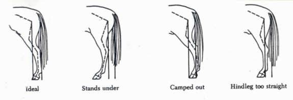 Stands under (sickle hock): This type of structure is known to be one creating possible hock issues such as arthritis and / or spivins due to the strain placed on the back of the hock.